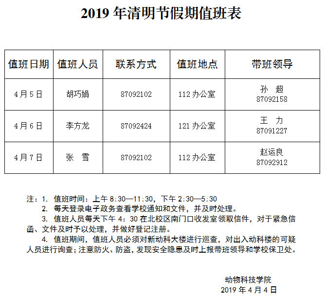 您现在的位置: 探花系列» 探花系列公告 » 2019年清明节假期值班表