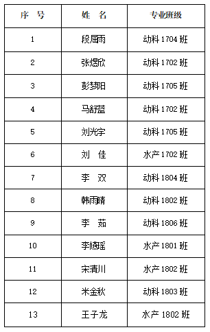 动科学院团委学生干部候选人名单