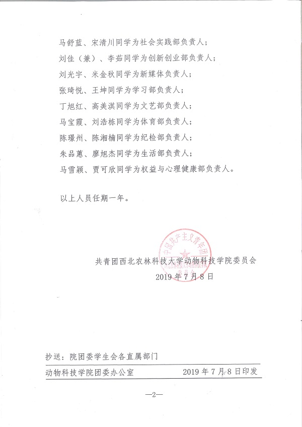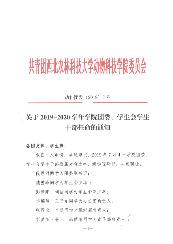 » 关于2019-2020学年学院团委、学生会学生干部任命的通知