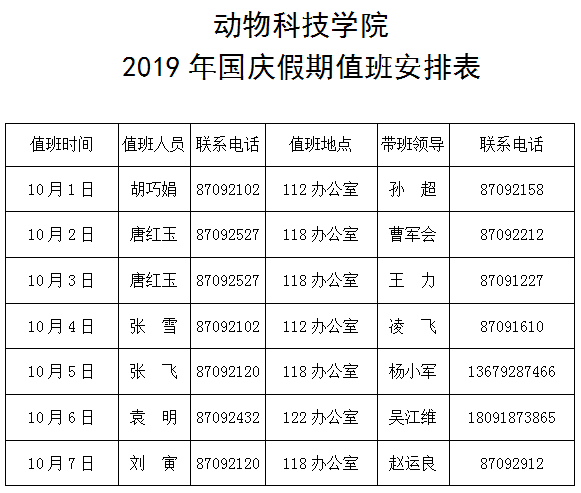 4.畜牧教学试验基地值班负责人:任智慧 刘俊盈 87040061,87040066
