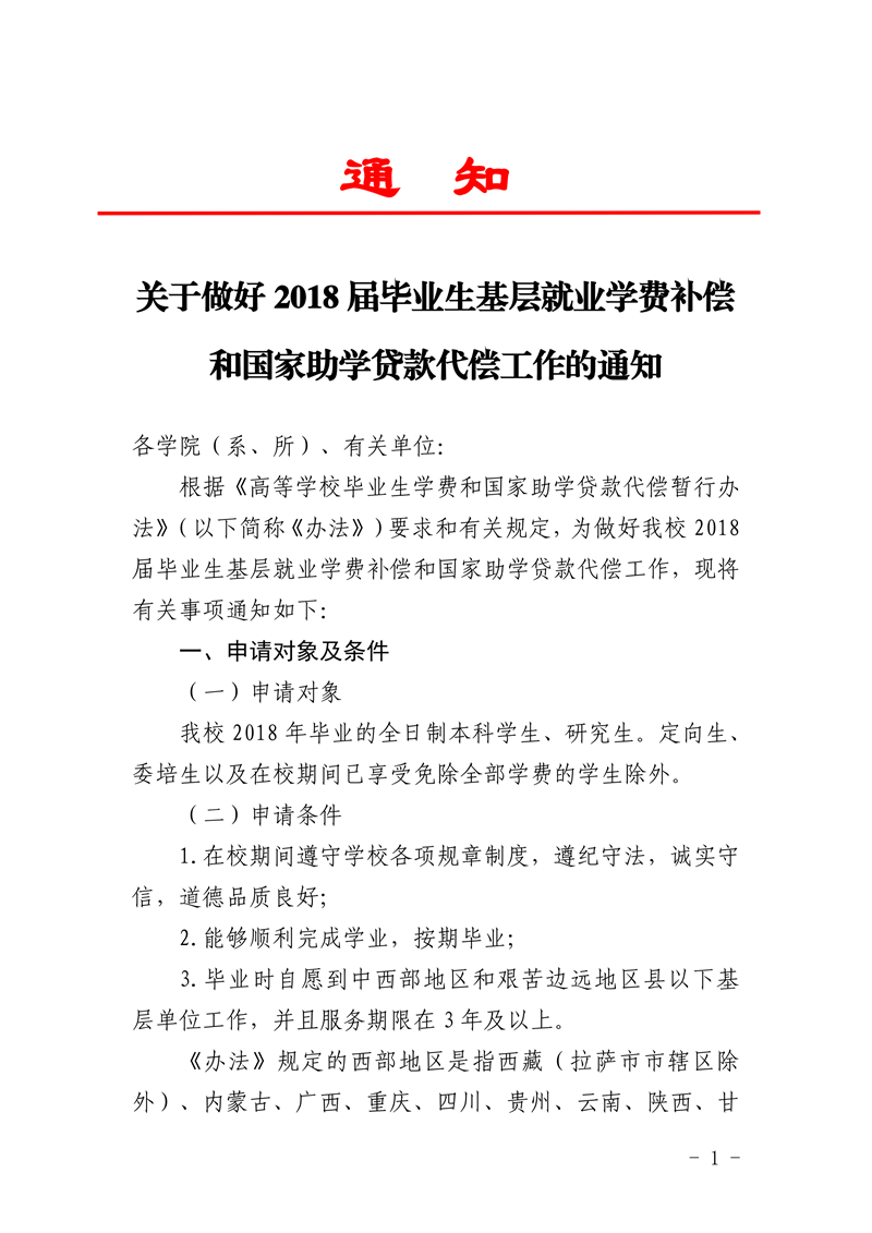 » 关于做好2018届毕业生基层就业学费补偿和国家助学贷款代偿工作的通知
