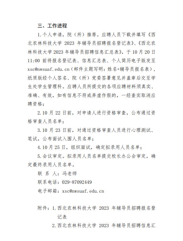 附件2:西北农林科技大学2023年辅导员招聘信息汇总表.xlsx