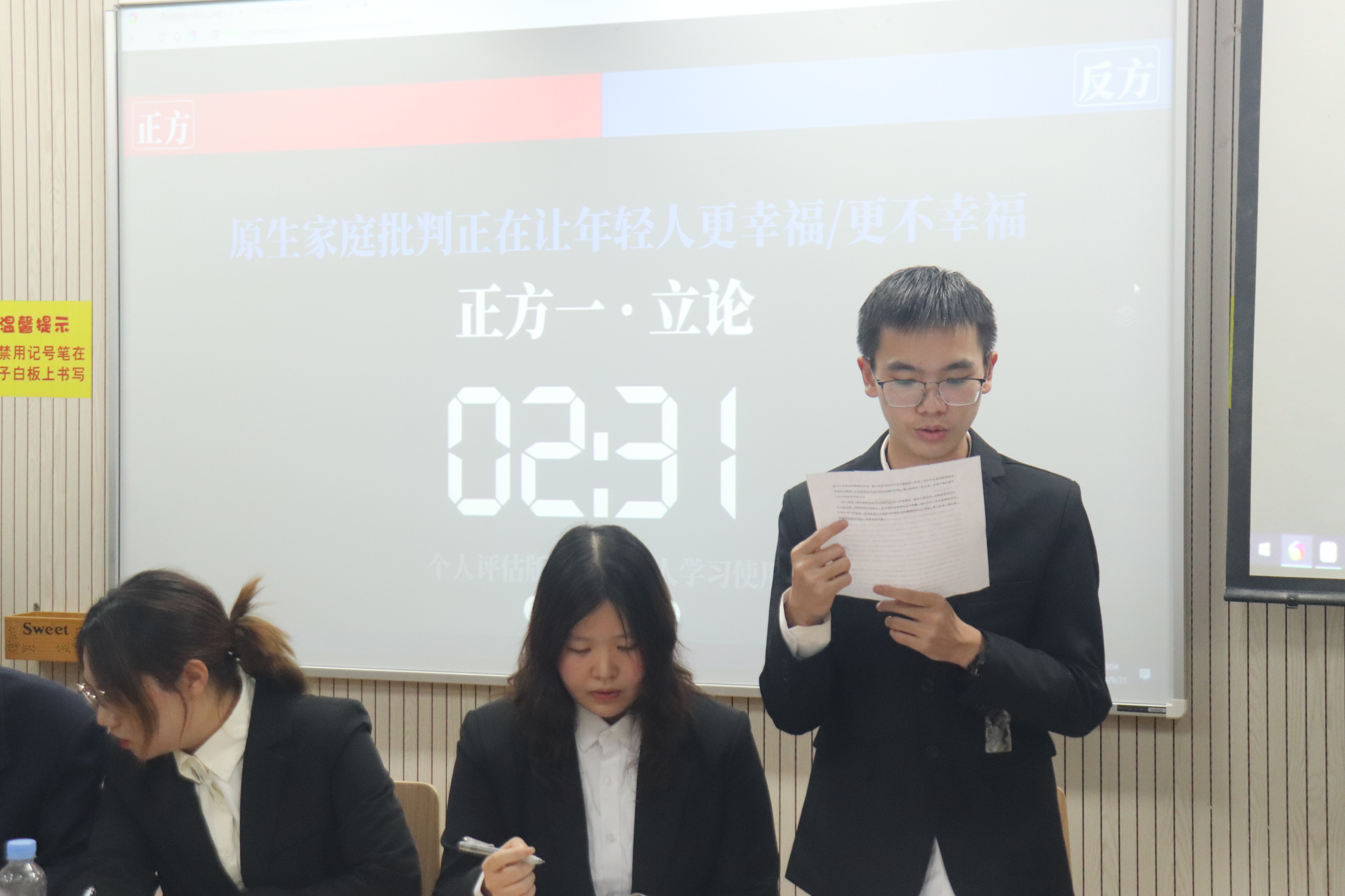 自由辩论阶段,比赛进入白热化,双方就 “批判与抱怨的界限”“年轻人自我成长的关键因素” 等话题展开深度交锋,思维的火花在激烈的言辞碰撞中不断迸发。正方以社会对原生家庭问题重视带来的积极改变佐证观点,反方则以年轻人在批判中迷失自我的实例予以回击。