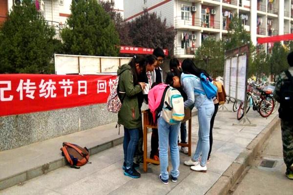 为帮助同学们重温诗词经典,体会中华文化的博大精深,10月20日,在重阳节来临之际,学院于西超雕塑前举行了以“牢记传统节日,弘扬民族文化”为主题的重阳节古诗文征集活动。