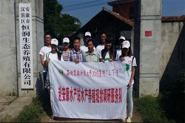 7月24日早晨,赴安康水产养殖现状调研服务队从水产站出发,步行到附近的恒润生态养殖有限公司参观学习。公司总经理佘先生和部分工人带领队员们参观了整个养殖基地,介绍了该公司的生态养殖模式、销售渠道等相关知识,并耐心回答了队员提出的问题,使队员们受益匪浅。