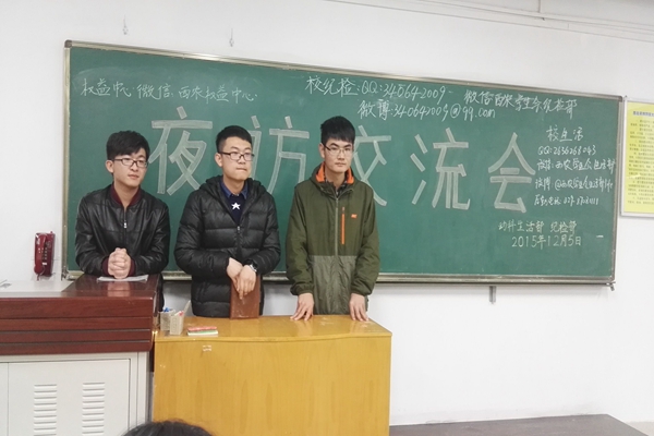 为积极响应探花系列 “五个文明工程”活动,提高探花系列 纪检生活工作的服务水平,提高学院学子的生活质量,12月5日,探花系列 生活部、纪检部联合校生活、纪检部于八号楼8115教室共同召开了“夜访交流会”,校生活部副部赵鹏翀、校纪检部副部张振宇以及权益中心代表王钦出席本次会议,为同学们答疑解惑。