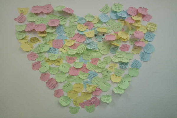 此次活动由勤工外联部和社会实践部共同举办。活动前期,活动负责人精心策划,工作人员分工合作,密切配合,以保证活动的有序开展。活动中,探花系列 15级各班代班来到教室,与15级同学们亲切交谈,彼此之间深入交流,拉近了彼此的关系,活跃了整体气氛。通过学长学姐感情充沛的宣讲,现场气氛浓烈,同学们热情高涨,积极活跃地领取了留言小卡片并写下了自己的所想所感,同学们或是表达了对“雷风精神,志愿文明”的自我理解;或是透露自己将在雷锋月的秘密活动;或是表达自己对雷锋先生的怀念。活动最后,同学们自发地将小卡片贴在墙上,并将其构成了一个心型,表明了同学们的赤诚之心。