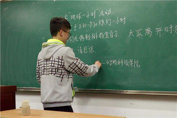 随着全球变暖、能源危机的问题日趋严重,全世界人民越来越关注环保问题。为响应世界自然基金会的号召,表达对保护环境,节约资源理念的支持,3月25日晚,学院于八号楼举行了以"地球一小时,你我齐参与"为主题的熄灯活动。