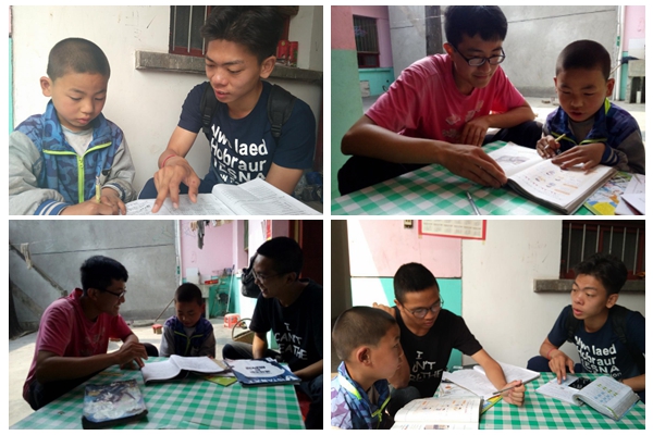 4月24日上午,半个城村村助带领动科学院志愿者前往村里开展支教实践活动,对孩子们的功课进行定点辅导。