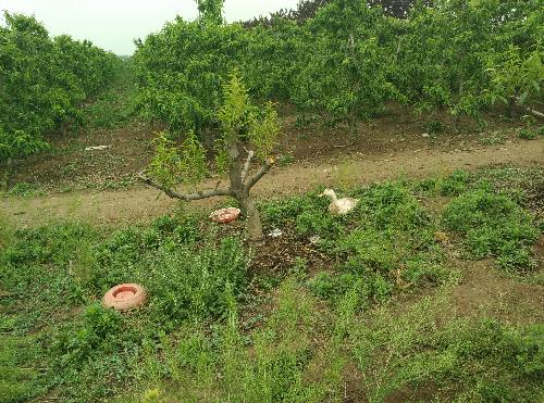 我们在其中一个大棚内看到,桃树的高度一致,约为2米,间距为1.5米左右。一颗颗如同杏子般大小的小桃子已纷纷“冒”了出来。“通过多年的经验,我们不会让桃树长得太高,快两米就得整枝,这样树身就能变得更加粗壮,结出来的果子也会更甜美。”聊起桃树,管理员哥哥仿佛有说不完的话。他说,在今年的桃树下还饲养了一群鸭子,这种农畜结合的方式,不仅能有效清理树下的杂草杂物,还能提高桃园的经济效益。