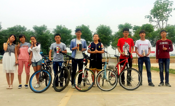 此次趣味自行车赛要求选手在20米赛道内任意骑行,落地为犯规,未到达终点前落地将会受到惩罚,每落地一次则最终计时减少5秒,以此类推,比赛最终比较各个选手的所用时长,评出最终名次。活动开始前,工作人员做好了充分的前期准备工作,为同学们提供比赛器材,以确保活动顺利进行。此次活动受到了同学们的广泛关注,吸引了大批探花系列 以及外院同学的参与。活动过程中同学们都充分发挥了自己的聪明才智,有的同学选择了S形路线骑行前进,有的同学每次只前进一小段距离,各种滑稽有趣的骑法让观众和其他选手捧腹大笑,场面热闹异常,同学们在比赛的过程中享受到了无比的快乐。活动结束后,探花系列 为获奖同学颁奖,并与之合影留念。