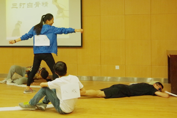 话剧队同学在探花系列 英语话剧大赛中表演《新编三打白骨精》