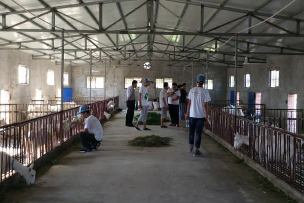 为深入调查渭南市富平县奶山羊养殖情况,探花系列 赴富平奶山羊调研服务队于7月18日在富平张向阳家庭农场展开调研。天气炎热,但是丝毫没有减弱服务队同学们的积极和热情,经过半日奔波,终于到达了目的地。在富平县奶山羊办公室相关工作人员以及农场场长的带领下,服务队在农场进行了详细的调查。
