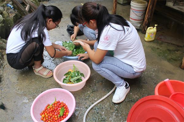 同学们的到来令村内老人惊喜万分,他们热情的招待了大家。队员们首先与老人们坐在一起,嘘寒问暖,共话家常,了解其家内的基本情况。通过交流沟通,队员们得知,村内大部分的青壮年人都选择了外出打工来养家糊口,一年一般只有过年时来回家一次,村内老人大多是独居在此,或和孙子孙女相依为命,“出门一把锁,进门一盏灯”的寂寥生活,是多数“空巢老人”的真实生活写照,而这种生活状况使老人们大多内心孤寂空虚。了解到这一情况,队员们决心要用自己的行动为老人带去温暖与关爱。队员们兵分几路,分工合作,携手为老人们做了一顿丰富的午餐,并与他们一同进餐。饭桌上,大家一同聊天开玩笑,气氛温馨异常。饭后,队员们向爷爷奶奶询问了当地的民俗文化,爷爷奶奶便热情的为大家展示苗族的地方歌舞,通过他们的表演,同学们苗族深深体会到了苗族歌舞的古朴、粗犷风格。队员们的到来为当地空巢来人带来的欢笑与快乐,令老人们赞许不已。