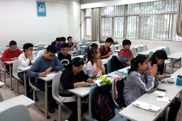 为促使学生自主地提高自己的综合能力,增强学生的自信心,提高同学们的表达能力。草业152班组织委员潘胜难同学和刘露同学共同组织班里全体同学于八号楼举办“课前三分钟”活动。