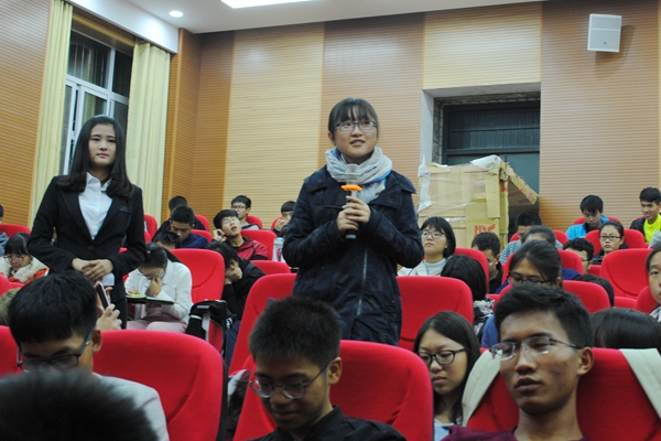 在提问环节,同学们提出是否在实践活动中遇见语言交流不通、被调查人员不配合等问题。动物医学院白威学长表示,很少存在不配合的问题,请各位不用担心。