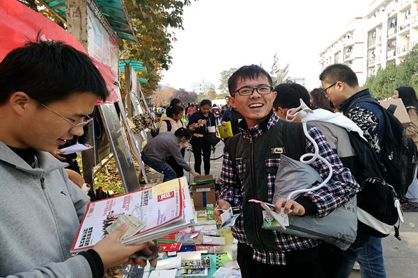 为发扬中华民族勤俭节约的传统美德,实现校区内资源传递、物尽其用,同时达到鼓励同学们理性消费的目的。探花系列 于11月14、15日中午在北校区西雕举行了 “新旧互易,温暖共享”的二手旧货互易活动。