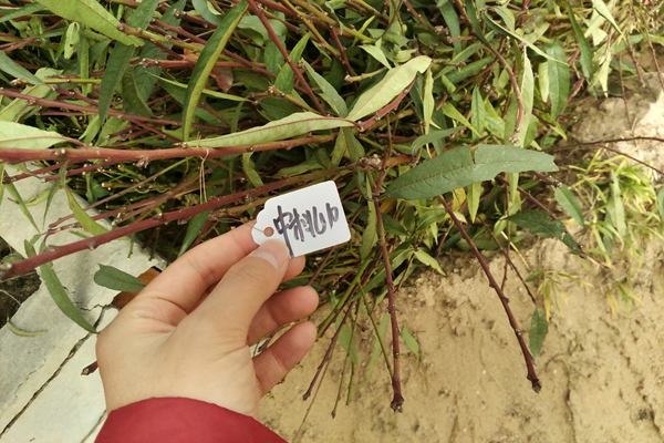 迈入合作社,合作社相关负责人和果园管理员正有条不紊地对将来用于扦插的桃树枝条进行分类、整理及捆装。队员们个个兴致勃勃,准备帮助工作人员做分类工作。经过管理员细心地讲解,同学们了解到,这批桃树苗木主要分为锦花和中桃10号两个品种,二者都是经过优质品种杂交培育而成,在生产实践中解决了许多品质问题。在具体了解了这些桃木的相关知识及分类标准后,队员们马上动手帮助果园管理员进行分类以及捆扎。众人拾柴火焰高,转眼间,约40捆苗木被井然有序地排放在地。然而队员们并不觉疲惫,脸上洋溢着热情的笑容。桃园管理员也对队员们的积极能干的表现点头称赞。