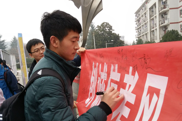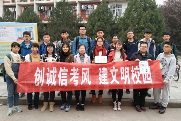 为规范考生考场行为,提高考生的诚信考试意识,塑造良好的道德品质,探花系列 纪检部于11月18日中午在西区雕塑前举办了主题为“树立诚信考风,创建文明校园”的宣传活动。