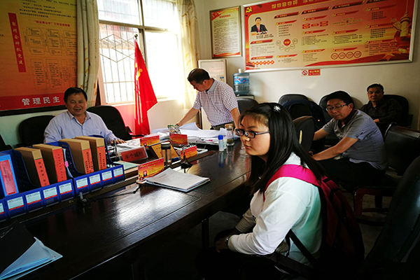 为了落实中央精准扶贫政策,对半个城村不同贫困区域环境、不同贫困农户状况,运用科学有效程序实施精确识别、精确帮扶、精确管理的治贫方式进行帮扶,村主任助理陈晓鸿、胥维秀来到半个城村村委会,在与村干部进行商讨,划区域分配任务后,开始走访贫困户,进行深入调查。