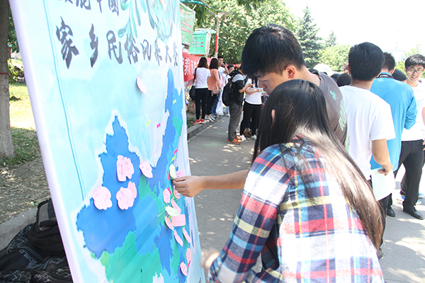 本次活动旨在为给学生提供展示家乡风采的平台,寄情家乡美好的机会。活动前期准备充分,为后期宣传工作的顺利展开打下了良好的基础。活动当天,创意独特的中国地图海报吸引来往学生频频驻足,同学们纷纷在便利贴上写下对家乡的寄语,并标注好自己的名字与家乡,再将其黏贴在地图中家乡的位置上。参与学生络绎不绝,字里行间都浓缩着同学们对家乡深切的爱,一位前来参加活动的同学表示:“看到家乡就果断跑过来了,我对家乡的爱难割难舍,很感谢动科学院给我这次‘表白’家乡的机会。” 探花系列 文艺部部委白泽宇发表感言:“看到大家提笔寄语,我想要立刻回到家乡,看一下它的秀丽风景,它的一草一木,这种血脉相连的感觉我毕生难忘。”寄情家乡的同时,探花系列 学生干部还为每位参与活动的同学送上了精美的礼品,现场氛围十分热烈。