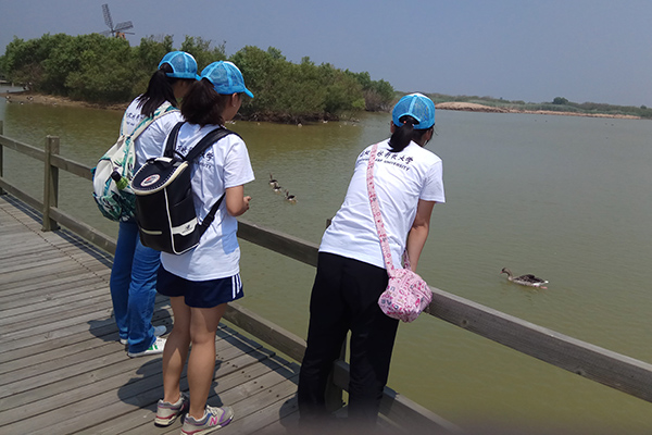 在自然保护区工作人员的带领下,团队成员进入保护区内部。一望无际的芦苇荡构成了一道天然而独具特色的自然景观,工作人员指出,芦苇荡便是为鸟类提供的天然屏障,也是黄河口湿地的标志之一。团队成员步行来到观鸟台,观察鸿雁和绿头鸭等野生动物的生存现状。此后,在工作人员的指引下,团队成员一同乘车前往望远楼。工作人员为队员们讲解了黄河流经此处的变化情况,以及鸟类为主野生动物的迁徙状况。与此同时,团队成员还对野生动物的生活习性以及生活条件进行了更加深入的调查。