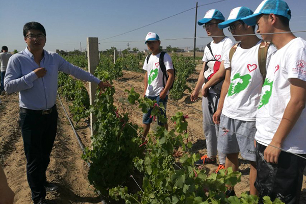 武威处于葡萄种植的“黄金”地带,区内光照充足,日较差大,气候干燥,相对湿度低,土质疏松,含钙高,热交换快,光、热、水、土资源组合优越,是我国乃至世界葡萄的最佳产地之一。队员们按照行程安排,早早地来到在威龙有机葡萄酒庄园,在负责人杨经理的带领下,实地考察了威龙葡萄种植基地。一到基地,队员们就被葡萄苗和杂草相间生长的新奇景象吸引了,经过一番了解后才知道,原来为了保持葡萄的有机性,只能喷一些生态液来预防病虫害,而这存在不能杀死杂草的弊端。杨经理说道:“如果你们能研制出低价高效的生态液,你们就为整个有机葡萄酒产业做了大贡献。”一番话鼓舞了在场队员们创新创优,为酿造出更优质的葡萄酒而不懈努力。相信随着人们生活水平的提高,加上一带一路政策强调产业绿色发展,有机绿色的葡萄酒必将成为市场主流。
