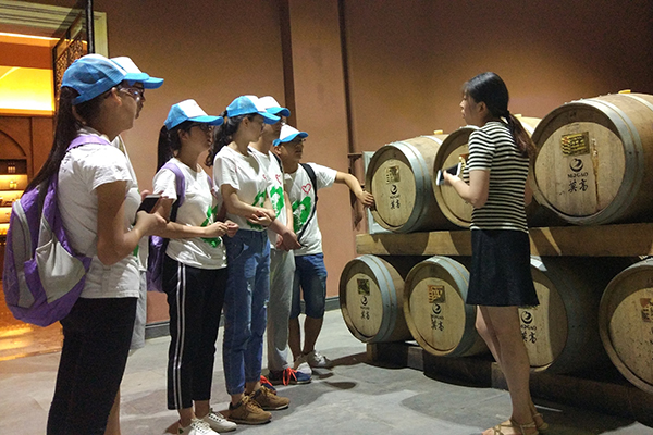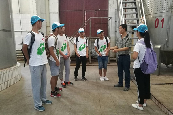 队员们还参观了武威当地著名的白酒企业——皇台酒厂。据皇台酒厂的李主任介绍,皇台原来是武威白酒行业的支柱企业,但随着白酒行业的竞争加剧,酒厂一度陷入资金亏损,公司的业绩日渐西落。回忆起那段艰苦的时刻,李主任脸上仍旧愁云不展,他说:“那个时候虽然已经掌握了酿造葡萄酒的基本流程,但由于技术人员的缺乏、制酒技术上的限制以及大众对酒厂最初的印象,葡萄酒的销量不容乐观。”但在2013年,公司做了一个重大决定,改变其单一的生产模式,探索发展葡萄酒产业。从生产技术到设备装置,从一无所知到熟悉流程,酒厂的领导和员工上下一心,终于生产出了酒厂的第一瓶葡萄酒,酒厂的转型发展就此拉开帷幕。而后进一步引进了先进成熟的生产技术、管理方式和营销理念,重新将老厂企业做大做强,焕发生机。在进一步的参观调研中,队员们得出一致结论:“技术是第一生产力”。