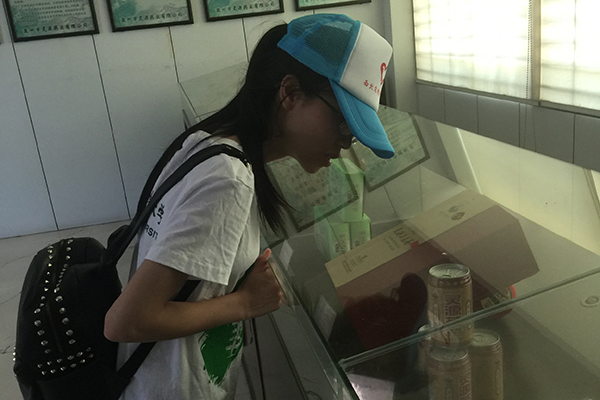 参观完原茶加工车间后,队员们依次前往发酵车间、成品包装车间和陈列室,进行参观考察。在这期间,队员们进一步了解了茶叶的加工工艺,并观摩了从上世纪90年代一直到现代在售的产品。吴经理告诉大家:真正的万应茶制作工艺一直掌握在灵源寺的僧人手中,文化大革命期间,灵源寺僧人们纷纷还俗后将这门技艺教授给了附近灵水村村民,而后成立了制茶厂,现在这门技艺在这里已经被非常好的传承了下来。掌握了这些情况之后,队员们感触很深,纷纷表示非常荣幸能够见证这一古老技艺的发扬光大。