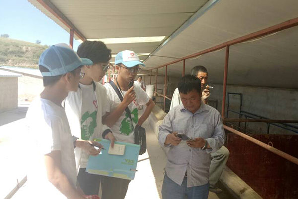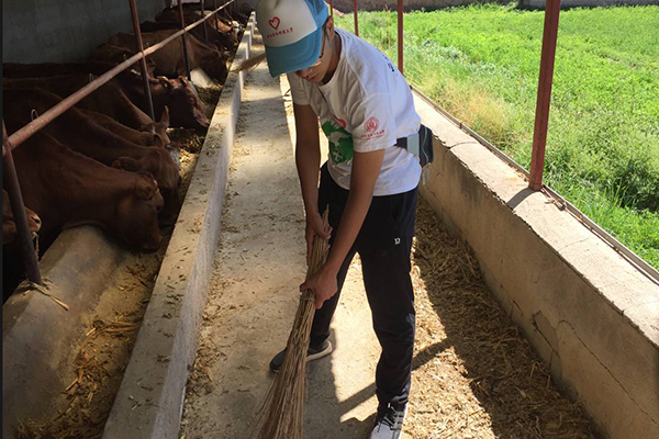 次日,队伍抵达陇西县文峰镇宏伟乡,走访了宏伟乡建军养殖中心。建军养殖中心分肉牛、肉羊、肉猪三个养殖繁育场,队员们深入其中的肉牛繁育场,进行更细致地了解。繁育场的工作人员为队员们细致地讲解了牛肉繁育场的建立过程、育种过程以及发展现状。对队员同学所提出的关于牛的种类、出栏时间、净重、净肉率、销售情况、疫病防治、饲料等问题工作人员一一耐心回答。与工作人员简单交谈过后,队员们深入繁育场,帮助工作人员记录牛的生长状态,打扫繁育场内的卫生。此次走访调研,队员们不仅了解了肉牛的繁育场的基本情况,还体验养殖场的生活,学以致用,大家纷纷表示十分受益。