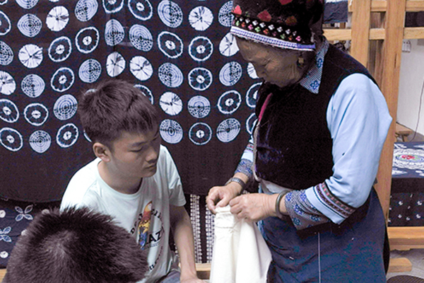 在与当地人交谈中,队员们了解到,扎染的染料用的是板蓝根。板蓝根有杀菌止痒的功效,作为贴身衣物是极好的染料。当地人告诉队员们,过去每家每户的后院里都种满了板蓝根,而如今人们大多是用化学制剂,这对皮肤损伤极大。据了解,因扎染效率低,耗时长许多年轻人都你不愿传承这门技艺,与大多数传统手工相同,扎染也正面临这传承这一难题。