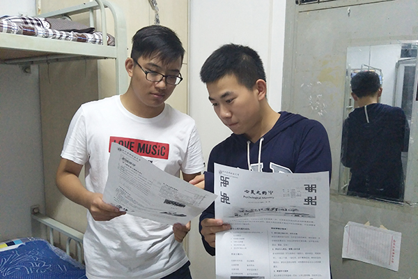 为了解决新生刚入学的困惑,促进2017级新生的身心健康全面发展。9月4日探花系列 心理健康部在西区2号楼,13号楼以及15号楼向同学们发放《心灵之约》月刊,鼓励大家以宿舍为单位集体学习心理知识,帮助新生快速调节心理状态,尽早适应大学生活,放飞青春梦想。