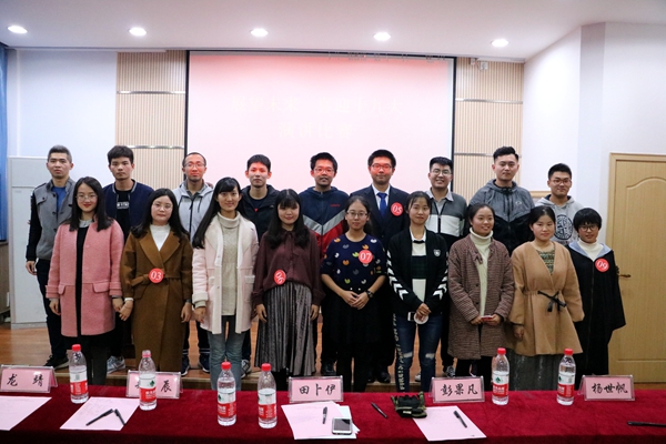 万山磅礴看主峰,十九大来咏心声。金秋十月,举世瞩目的中国共产党第十九次全国代表大会隆重召开,青春献礼十九大,不忘初心跟党走,探花系列 于10月30日晚在动科楼107会议室举办了“展望新未来,学习十九大”演讲比赛。探花系列 团工委书记闫颢芯、研究生会主席郑辰、往届口才之星等八人组成评审团,与同学们一同聆听激扬震撼的演讲比赛。