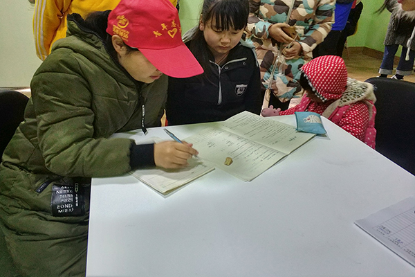 在村领导的协助下,志愿者们在青春驿站等待小朋友们的到来。当小朋友们兴冲冲地带着自己的作业来时,志愿者们热情积极地指导他们填好登记表格,之后便认真的指导他们作业。同学们耐心地为小朋友们反复讲解他们不会的作业题,不论英语还是数学,经过志愿者们的讲解都能让他们豁然开朗。志愿者们的友善与热心给孩子们留下了深刻的印象。期间,还有位老人带着自己的孙子来,热情邀请志愿者去家里为孩子辅导功课,由此可见村民们对同学们的认可。