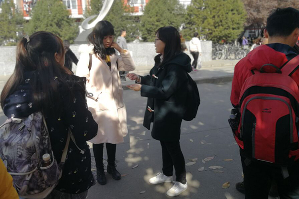 在中午的人流高峰期,纪检部部委们在西雕积极地跟来往的同学们宣传本次“心灵之书”分享活动。工作人员耐心地给参加活动的同学讲解活动内容和活动意义,希望大家能将喜欢的书分享出来,同时也建议他们去浏览其他人分享的书籍,相互学习,做到“心灵沟通”。活动吸引了大量同学参与,现场气氛十分火热。