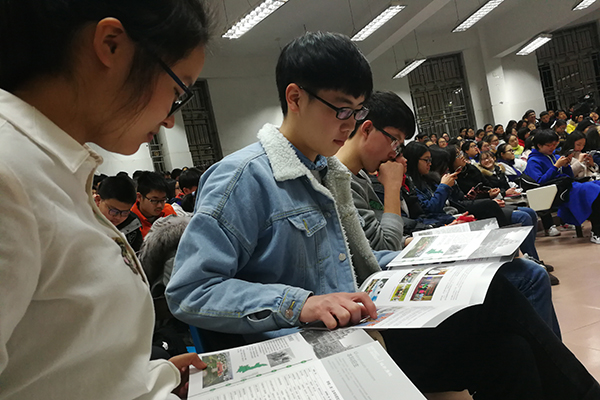 同学们认真查看宣传册