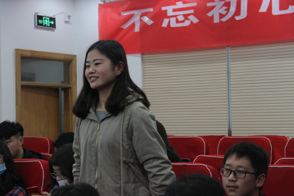 交流会上,五名同学先后介绍了自己保研学校及专业,并就研究生专业分类、 保研要求等问题做出细致的讲解, 指导同学们如何制定考研目标。何欢同学结合自身保研经历,总结了“搜集信息、联系导师、准备材料、特别关注、面试技巧”等关键词,从细微处出发,详细讲解了自己保研中遇到的种种问题,仔细阐述保研技巧。成功保研北京大学的刘璐同学在谈及面试技巧时强调,基础课程是面试中关键的一环,希望同学们以基础课程为着力点,抓住机会,认真对待面试。