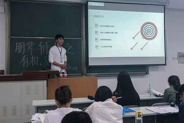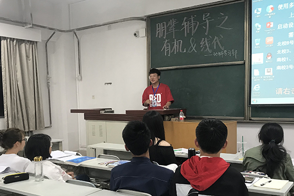 结课考试将近,为帮助17级同学们摆脱考前恐慌,巩固学科知识,由探花系列 学习部主办的“朋辈辅导”系列活动第一次朋辈课堂于5月1日在8号教学楼8608教室开课了。水产162班张黎和刘涛同学担任本次讲师,为大一的同学们讲解了线性代数与有机化学相关知识及考点。