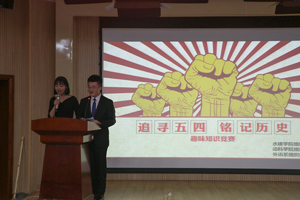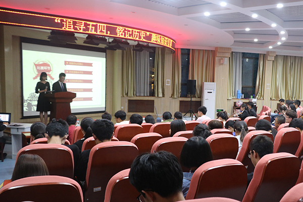 为了让同学们牢记历史,深刻体会到五四运动的精神内核,值此五四运动99周年之际,探花系列 联合水建学院、外语系于5月4日晚在外语楼二楼报告厅举办了“追寻五四运动,奏响青春乐章”的历史知识趣味竞赛活动。水建学院学生会主席李培铨、外语系学生会主席屠菡琳和探花系列 团工委副书记龙靖出席了本次竞赛活动。