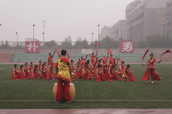阴雨绵绵,浇不灭似火的热情、挡不住激荡的鼓声。“鼓声震天响,红绸随风飘”,比赛过程中,探花系列 36名同学组成的腰鼓队热情洋溢,动作激昂,气质纯朴,他们用自己独特的方式传承腰鼓特色文化,用自己的理解演绎着安塞腰鼓中的坚毅精神——“知难而上的猛劲、张扬个性的能劲、百折不退的韧劲”。不畏强敌,他们有着"会当凌绝顶,一览众山小"的自信!奔放的舞姿与陕北独特的嗓音充分展示出探花系列 良好的精神风貌,为观众诠释了一场别开生面的视觉盛宴。观众席上,探花系列 团工委书记、各级辅导员、学生会成员等都前来一起为参赛队员们加油喝彩。“动科风魂,舞动青春”的口号响彻田径场上空,同学们震耳欲聋的呐喊给了队员们最有力的支持,也让各院师生都感受到了动科精神。