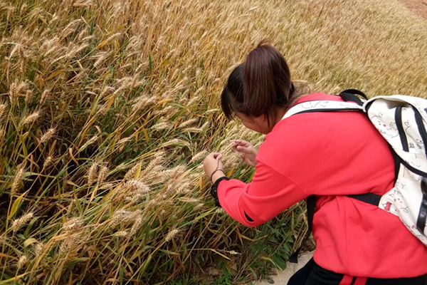 随后,队员们到了村子大田附近调查麦子和其他作物生长情况。寨东村主要农作物如麦子长势良好,无大面积的病虫害,少见倒伏,各生长特性十分优异。在征得合作社负责人同意的情况下,队员们采集带回了少许样本进行检测,并准备于下次活动时同村民们交流分享检测数据。