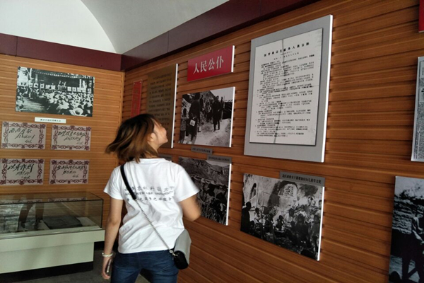 即使夏日炎炎,同学们追忆革命历史的热情也丝毫不减。刚走进大门,同学们就被这里浓浓的革命气息所感染。院子里坐落着许许多多的破木房,可见当时革命先烈的工作环境之艰苦。工作人员热情地接待了队员们,并领他们走进展厅。