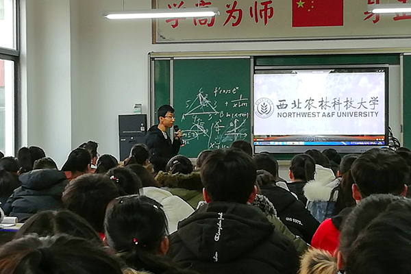 宣讲伊始,队长首先播放了一段快闪视频,从学校定位、师资力量、学科特色、科研实力、人才培养体系、招生政策等方面全面呈现了我校的魅力与实力,点燃了全场氛围,同学们纷纷赞叹不已。之后,其他队员通过发放宣传手册和纪念品,再结合PPT演讲,多层次,多方位地介绍了西北农林科技大学的各方面信息。副校长观看了视频后赞叹道:“经国本,解民生,尚科学,这不仅是西农的精神,更应该是每个高校义不容辞的担当,西农人走在了时代的前沿。”