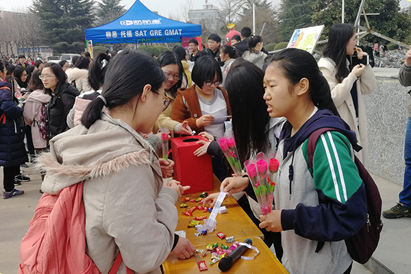 活动当天,学院在西雕开展的女生节特别宣传活动形式新颖有趣,现场气氛轻松融洽,同学们积极参与其中。女同学们通过女性知识问答获得抽奖机会,便可在奖池中抽取奖品。小礼品中有绚烂的干花束、宜人的小熏香,正如身边的每一位女生,带着温柔的彩和适宜的香,给人们带来快乐和幸运。知识问答环节中,一张张认真思索、自信满满的青春笑脸,一个个独立傲人、含苞待放的靓丽身影,在女生节这天给众人留下深刻的印象。女生们通过自己的聪明才智和女生节这天满满的幸运获取自己心仪的礼物,潜移默化地向女性同学传达女性“独立自强”的节日主题。
