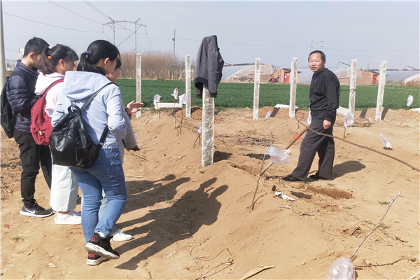 在管理人员的带领下,队员们依次走访了各类大棚。面对专业种植猕猴桃的管理人员,队员们开始就猕猴桃养殖以及当地农业开始交谈。面对刚嫁接种植了两三天猕猴桃,管理人员向队员们介绍到:“每个切口出都用塑料袋覆盖着,是为了保温和保湿进而可以促进枝条的生长。在大棚中经常采用这类技术来促进猕猴桃果苗的存活率和结果率。”此外,队员们和大棚内其他管理人员共同讨论了种植土壤的构造和原理、当地农户的作物类型、两会关于“三农”的新政策、增加果品品质和产量的方法、当地种植水果的销售渠道、当地农业政策等。将近一个小时的交流,晌午时分大太阳照射的田间,面对队员们提出的问题,大棚内管理人员一直都是耐心、仔细的为队员们讲解。在这次交谈之后,队员们学到了很多也意识到了农村发展的许多不足。队员们集思广益,为村子提建议,共同为乡村振兴做贡献,让当地农民未来过上真正意义上的小康生活。总之,今天的活动队员们受益颇多。