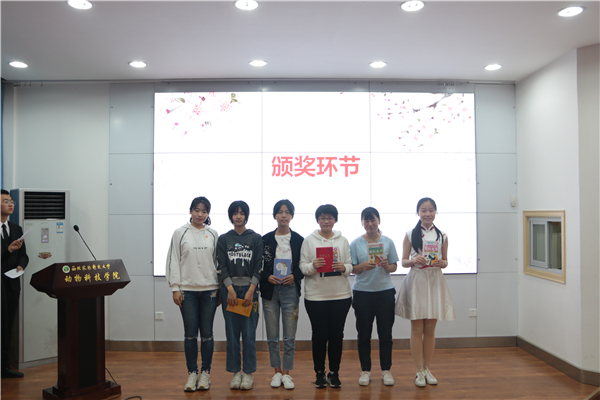 整个比赛既增长知识又妙趣横生,既机智折服又险象环生,让人置身书海欢乐采撷,停居久留而不自知,恋恋良知而忘返。比赛结束后,现场进行了分数统计,最后“翰墨书香”队取得第一名。本次大赛共设一等奖1名,二等奖2名,三等奖3名,优秀奖6名。同时本次活比赛还设置了公益捐书活动,一等奖获奖团队将向周边小学捐出科学类读物20本,二等奖15本,三等奖10本,奖励十分有纪念与公益意义。