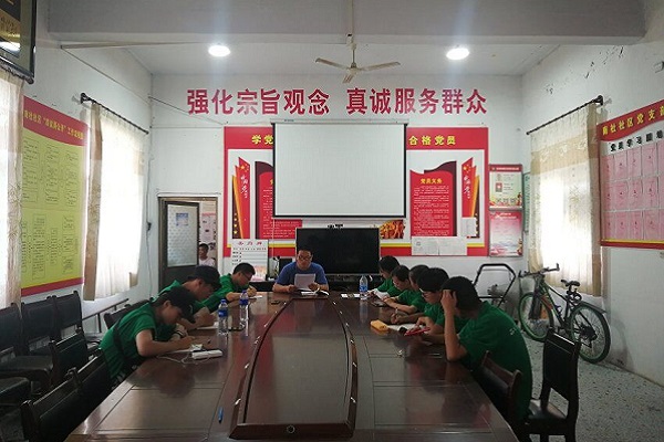 小队成员在村委会与李书记交流南社村发展状况
