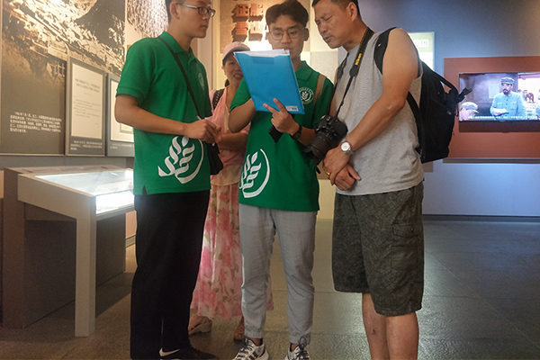 队员采访参观游客