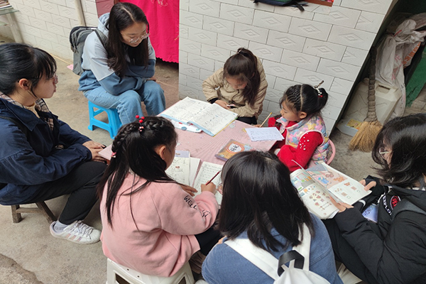 在按照登记表上的信息寻找到有辅导需求的孩子们后,支教志愿者们三两分组针对课后作业对孩子们展开辅导,每位支教志愿者都全身心投入,耐心的为孩子们讲解习题,并用生动形象的方式为孩子们解答疑惑。