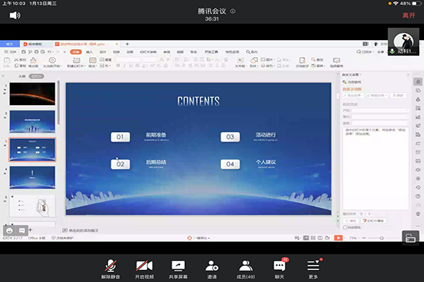为了在疫情防控期间保障同学们寒假实践活动的顺利开展,探花系列 于1月13日顺利召开了寒假社会实践活动交流会,出席会议的有张明侠老师,程烨同学、赵家悦同学以及寒假实践活动全体队长和社会实践部全体成员。